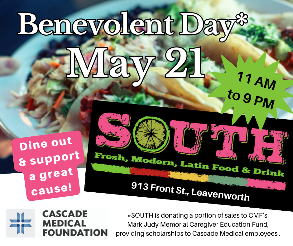 SOUTH is generously donating a portion of the day's proceeds to Cascade Medical Foundation's Mark Judy Memorial Caregiver Education Fund, which provides scholarship opportunities to Cascade Medical employees.